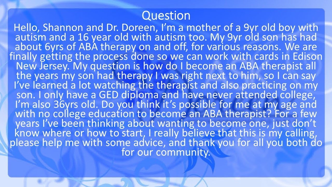 Ask Dr. Doreen: How To Become An ABA Therapist - YouTube ~ Indeed lately is being looked by consumers around us, possibly among you. People are currently accustomed to making use of the internet in smartphone to watch video clip as well as picture details for ideas, and also according to the name of this short article I will review around Ask Dr. Doreen: How To Become An ABA Therapist - YouTube.